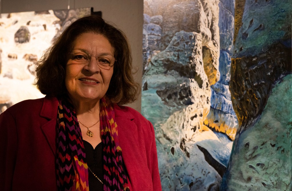 Monika Deus malt vorwiegend realistische Landschaften in Acryl, ein aus Steinen bestehender Strand, eine enge Schlucht und eine spritzende Welle. Dabei fällt besonders das Spiel mit Licht und Schatten auf, das Sie gekonnt in ihren Bildern einsetzt. Daneben findet man auch Traumlandschaften, die ihre Liebe zur Romantik und Natur zeigen. Monika Deus ist seit 2014 Mitglied im Spektrum und seit 2022 Mitglied im Vorstand.